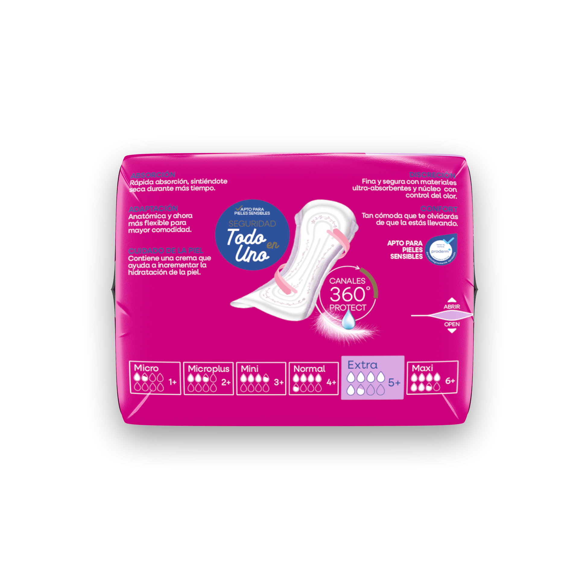 Canales que absorben más rápido. Para mantenerte más seca y protegida.