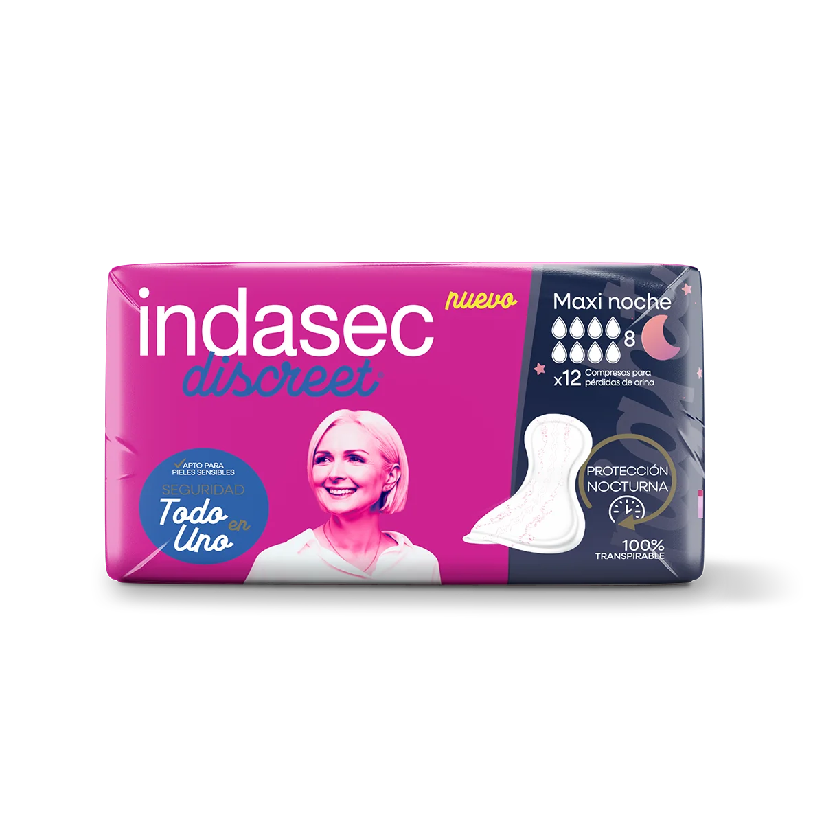 Nuevo formato anatómico para una mayor adaptación y protección extra trasera durante la noche