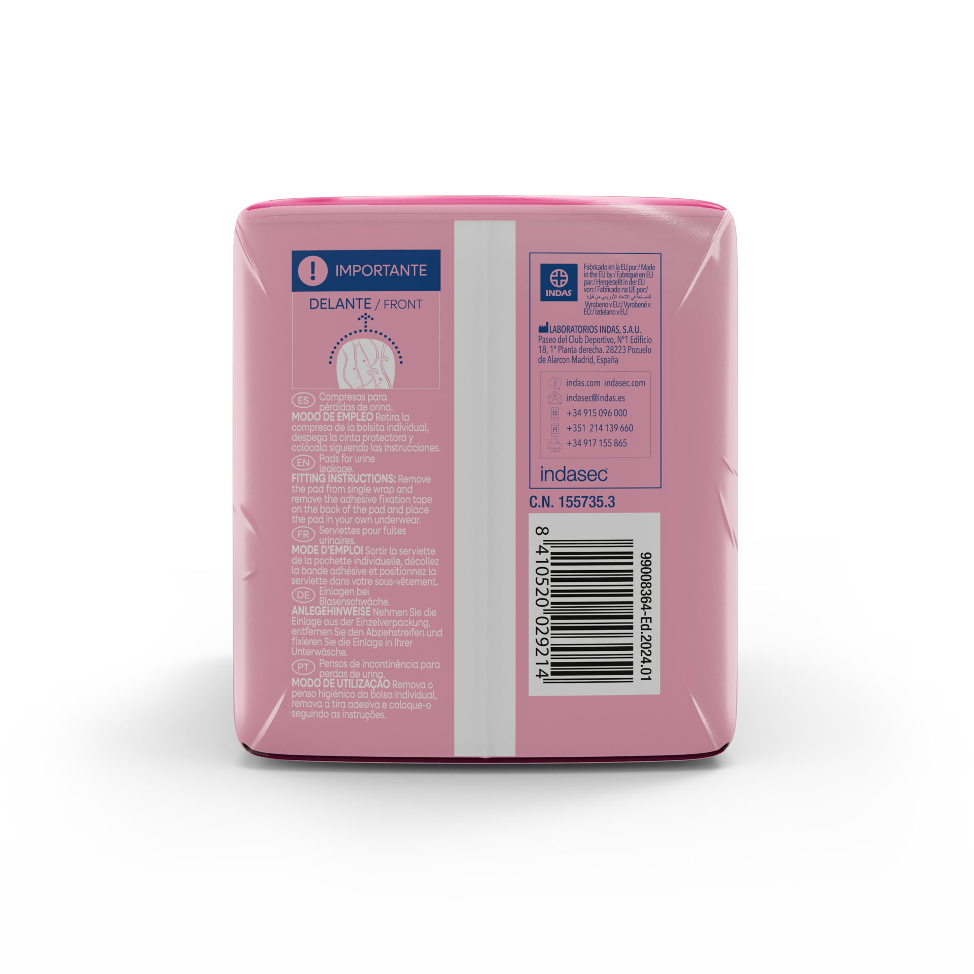Compresa para pequeñas u ocasionales pérdidas de orina muy leves a leves.